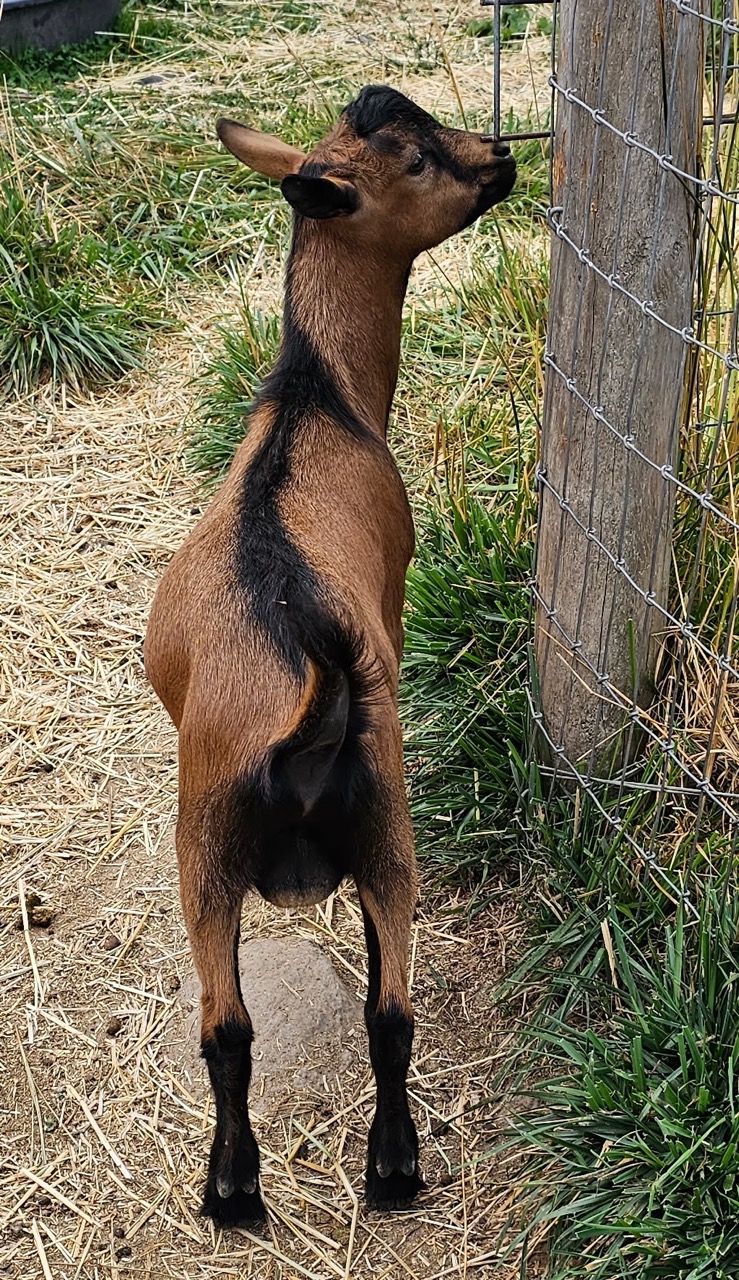 SDS Farm ZQ Big Tuna Quinn is a lovely buckling from Sunny Days Farm, I especially appreciate his length and his rear angulation. This guy’s pedigree is packed with champions, I first admired his sire when he was a baby being shown in the PNW.Tuna is the only goat I brought in during 2023 with the goal of having an outcross to combine with some of my Kat line, unfortunately for 2024 kidding season he only produced one doeling. I’m going to try again heavily in for 2025!