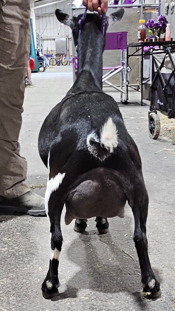 Kitty Kat is part of the Kat collection here and also a daughter of Diji Farm MT Prince Eric. She’s a tiny thing with a cute udder as a first freshener, just like her dam R Serenity BS Katalina. I’m really curious to see if she follows in her dam’s foot steps with her second freshening.